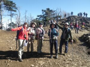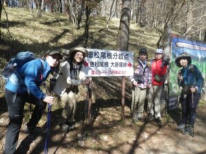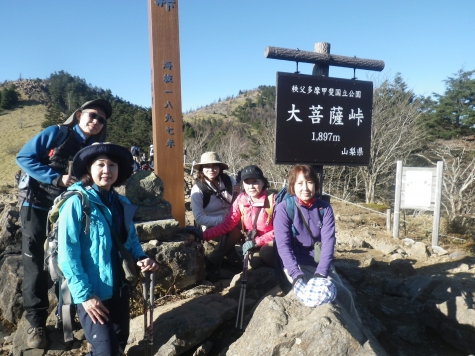 ■大菩薩嶺登頂後は 大菩薩峠で一前パシャリ 快晴・絶景に笑顔こぼれる