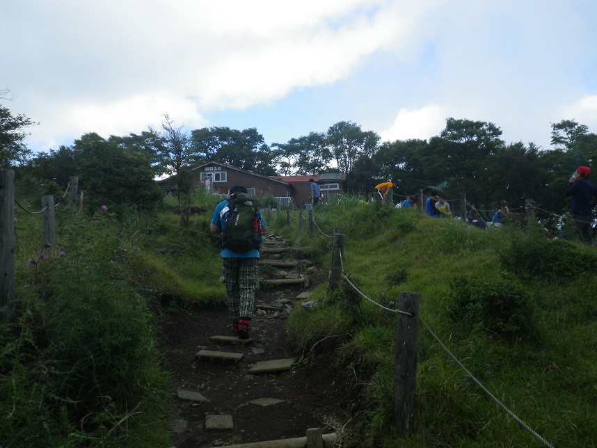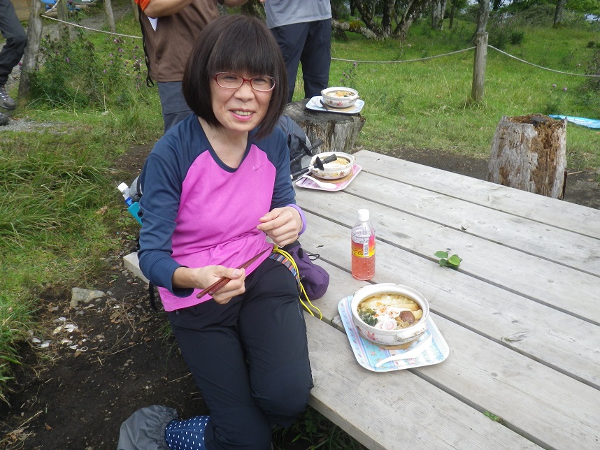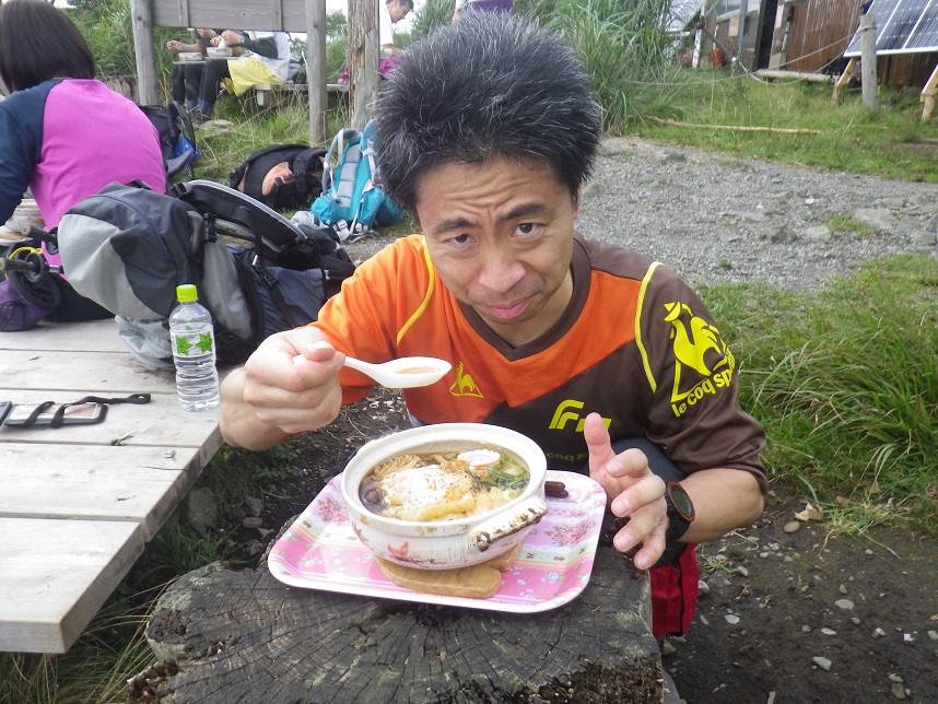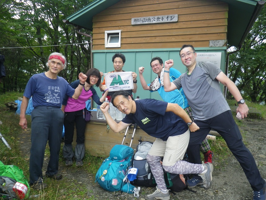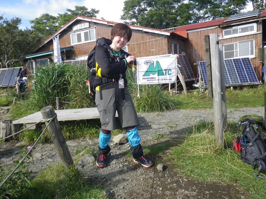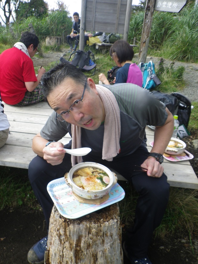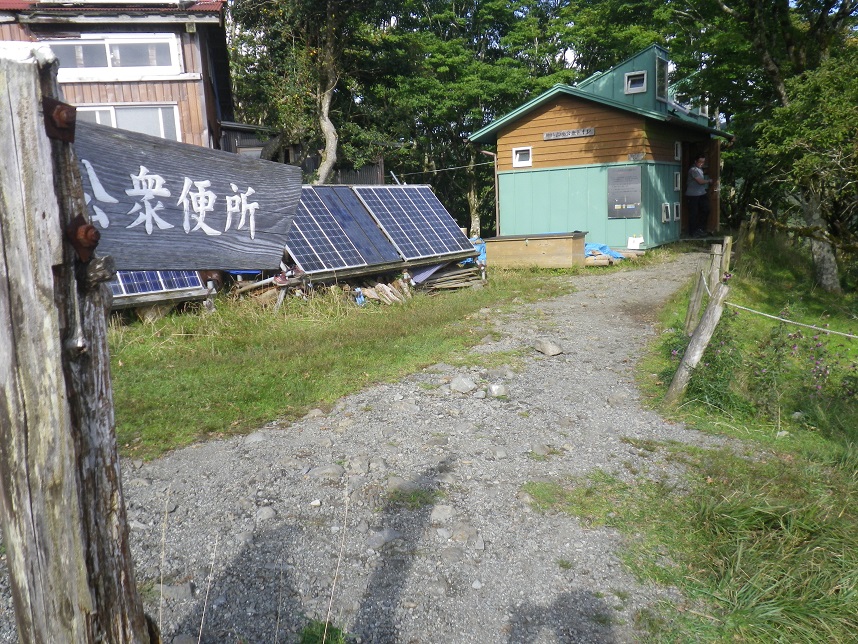 ■山頂トイレ前 小屋の「草野さん」 ■渋滞で山頂まで届かなかった女子たち3名