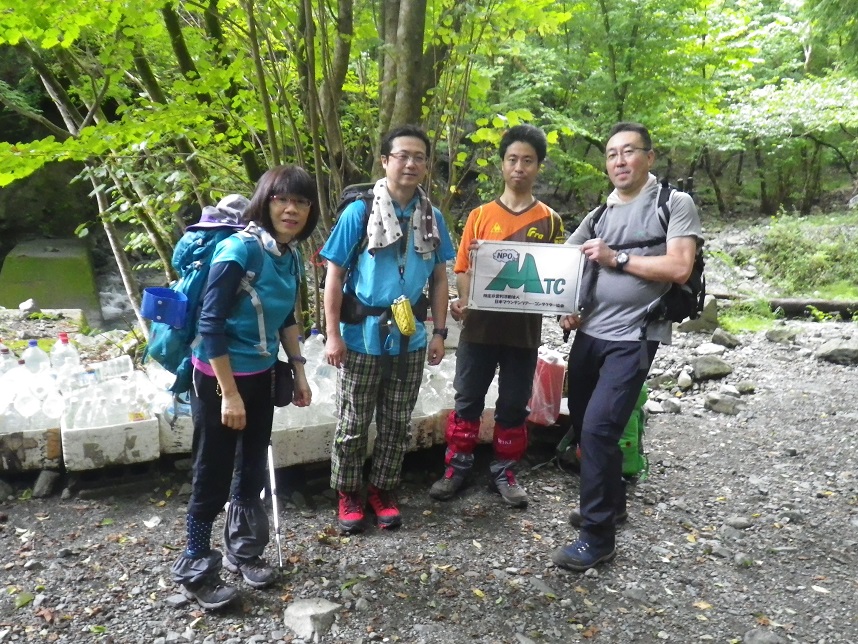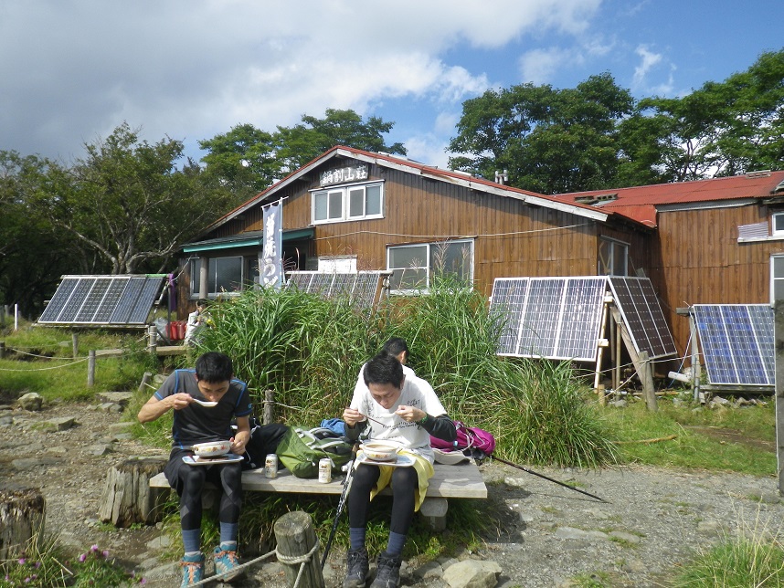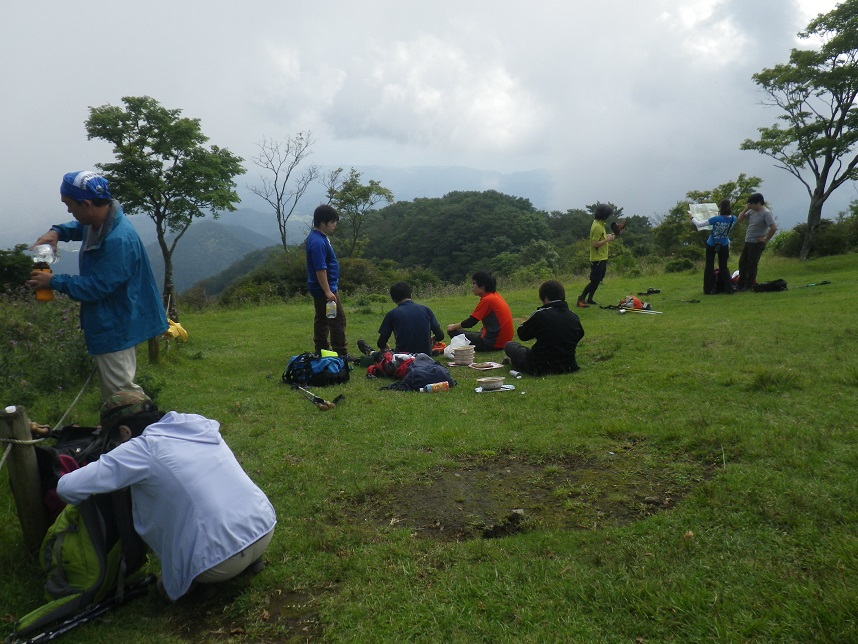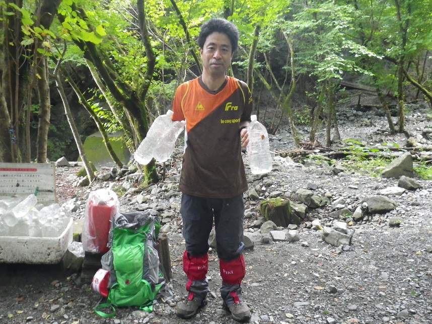 ■やっと着いた県民の森から2時間 ■両手に4kgの水を持って登頂の若者A
