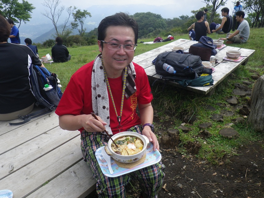 ■鍋割の山頂から富士山のぞめず ■B組女子1名(8L山頂に担ぎ上げ)走り込む