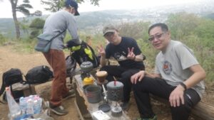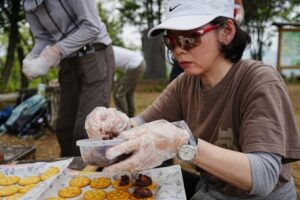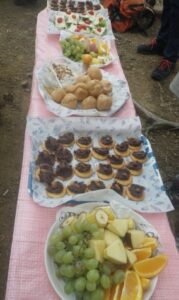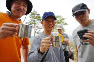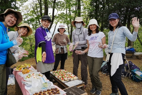 ■最終目的地/龍崖山264mで山カフェ 通過ハイカ「おおお・豪華なランチ」の歓声 ワインあり