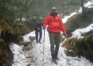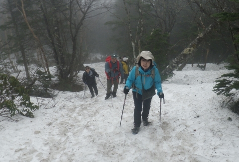 ■将軍平から林の中の急登(残雪2m) ■エネルギー補給