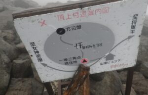 ■全国に数少ない 山頂に1等三角点あり ■山頂の地図:風強く蓼科神社奥宮お参り断念