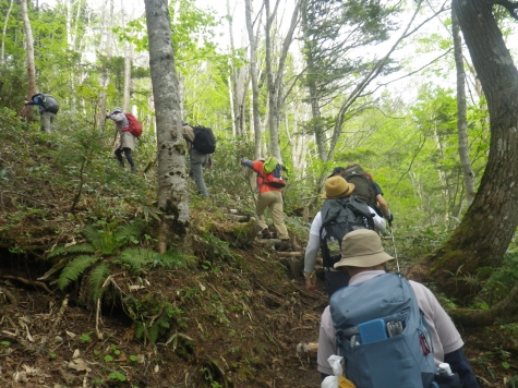 ■山頂までは急登 ブナ・ダケカンバ・コメツガ・■つつじのつぼみ 心和む