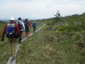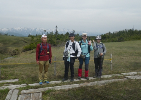 ■高層湿原の山頂/世界にも珍しい貴重な自然 奥に雪が残る 会津駒ケ岳遠望
