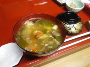 ■湯の花温泉/そば滝音・断ち切りそば+熊汁 ■南会津伊南古町温泉 源泉が赤い