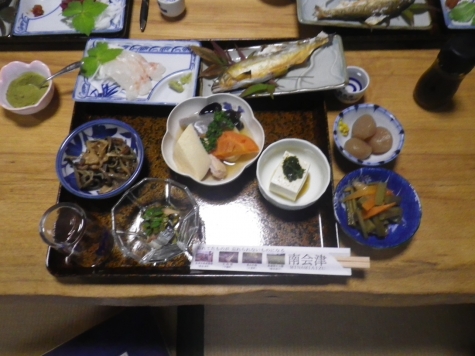 ■民宿田吾作の夕食 キノコ・あゆ 地元産の食材
