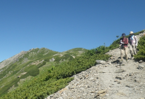 ■荒川三山 悪沢岳 前岳 中岳の稜線(荒川三山避難小屋)