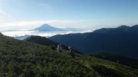■午前6時 千枚岳から丸山へ 山頂近く 富士山がくっきり