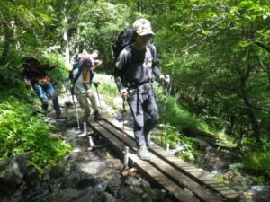 1000/タクシー=1045広河原登山口 1100吊り橋/北岳登山口~森林帯