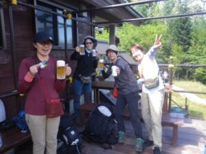 ■白根御池小屋到着 ビールでしょ ■MTC市川君のヤマカフェタイム