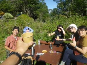 ■白根御池小屋前の広場で 楽しいヤマカフェタイム