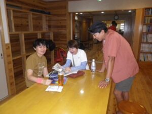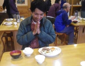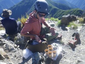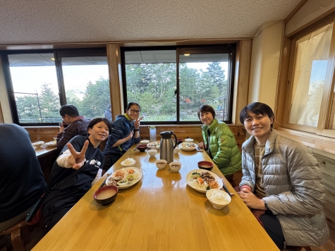 1340白根御池小屋(泊 夕食)小屋前でカフェタイム
