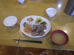 ■1700夕食開始 豚のしゃぶしゃぶ風 ■ごはん・味噌汁お代わり自由