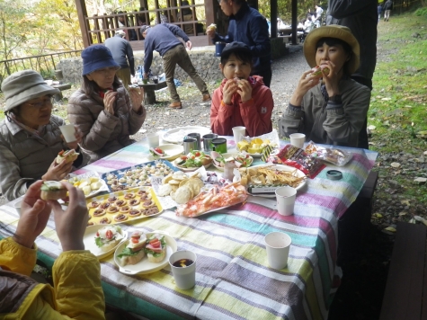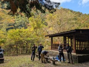 ■写真 ©水上 山カフェ終了後のミーティング ■©水上 カフェ班と紅葉の渓谷