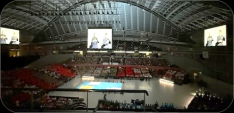 開閉会式は東京体育館で行われ、モニターは4台(左右・正面と裏)日本語・英語、又は日本手話