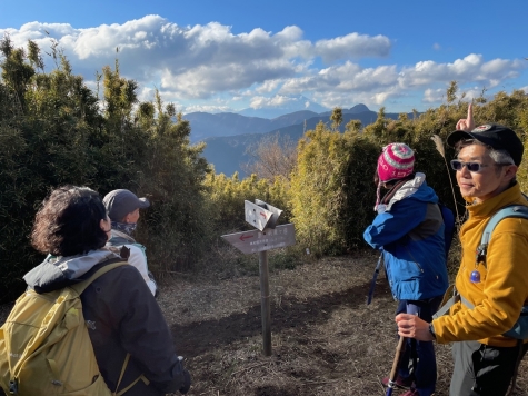■明星が岳と明神が岳の鞍部(コル)到着 しっかりした指導票あり ©鈴木