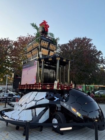 まず、ヤグラには、伝統的な檜原産杉を活用した太鼓が鎮座し、お囃子隊が演奏できるス