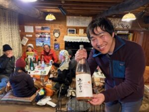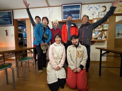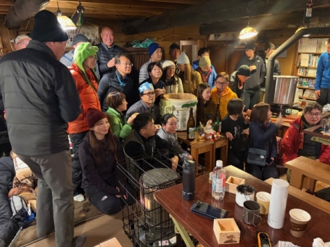 ■元旦迎える 00時05分 カウントダウン終了 ご主人米川さんと小屋に集まった強者(男女30名)
