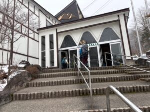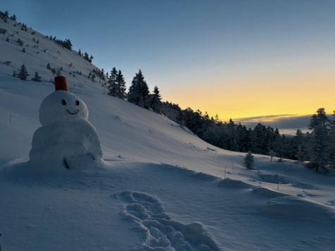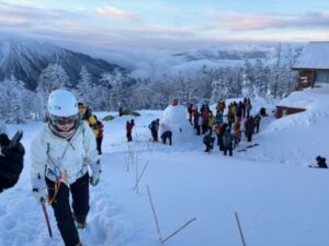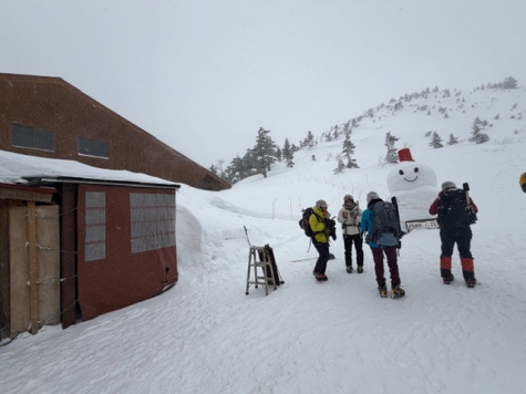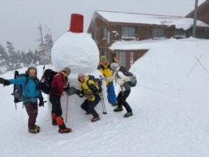 ■駅から約90分 西穂高山荘到着 雪ダルマ出迎え