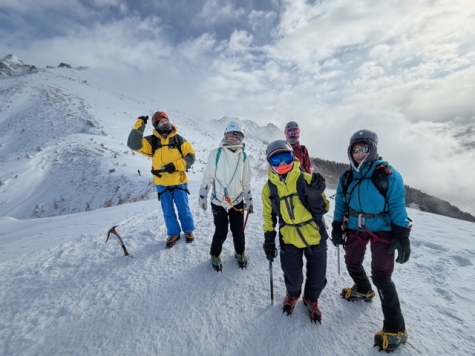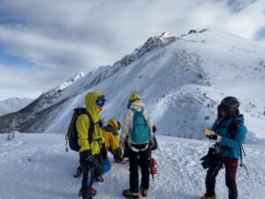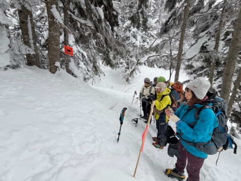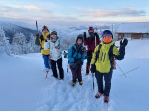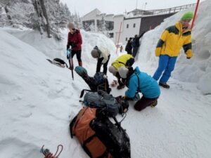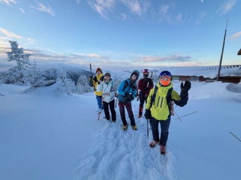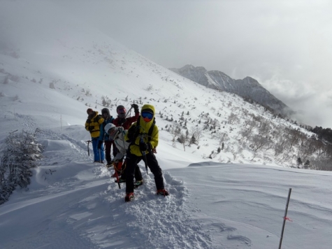 ■山荘の前には雪山講習会の生徒33名集合 ■午前7時雪山装備装着 出発
