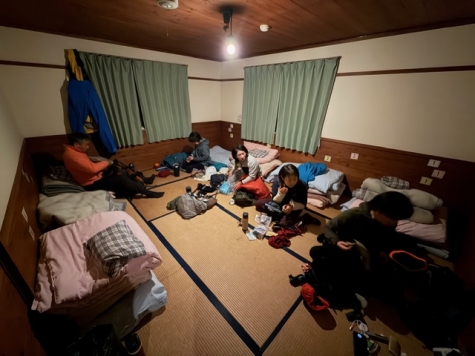 ■部屋は8畳に6人 ゆったりスペース 就寝8時30分