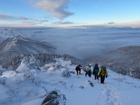 2/8;0530起床/0600朝食 0700小屋発~丸山山頂0730~独標手前0820~小屋0920