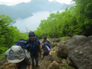 ■山頂へ(開山~閉山)開く/修行開始 ■8合目 中禅寺湖を眼下に見る